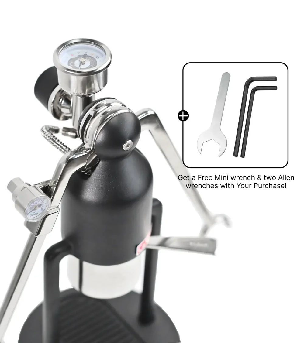 يعمل الجهاز على مبدأ القياس المباشر لضغط الماء المؤثر على كبسولة القهوة. عند الضغط على ذراعي ماكينة القهوة، يُولّد المكبس ضغطًا على الماء الساخن في المصفاة. ثم يُوجّه جزء من الماء عبر أنبوب مرن إلى وصلة على شكل حرف T، حيث يؤثر على مستشعر مقياس الضغط. يعرض هذا المستشعر قيمة الضغط بالبار فورًا، أي القوة الدقيقة المستخدمة لاستخلاص القهوة، في الوقت الفعلي ودون أي تأخير.