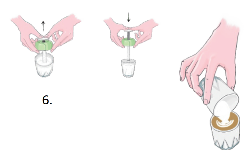 - إذا استخدمت ماكينة صنع القهوة لتحضير الحليب الرغوي، اغمر المضخة في الماء ثم قم بضخ الحليب المتبقي