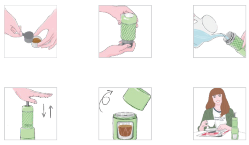 - املأ سلة القهوة بالقهوة المطحونة (7-10 جرام) واضغط عليها برفق باستخدام الجزء السفلي من كوب القياس.